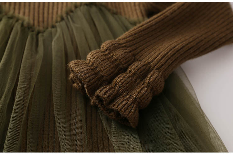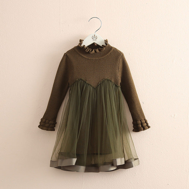 Key Name: Kids Baby Girls Mini Above Knee Sweater Lace Patchwork Dress