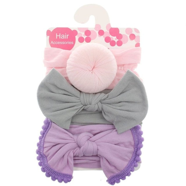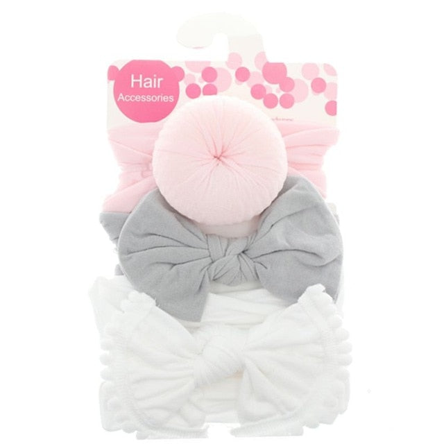 3pcs/Set New Solid Nylon Headband Bow Headbands For Cute Kids Girls Hair Girls Turban Hairband Children Soft Cotton Headband