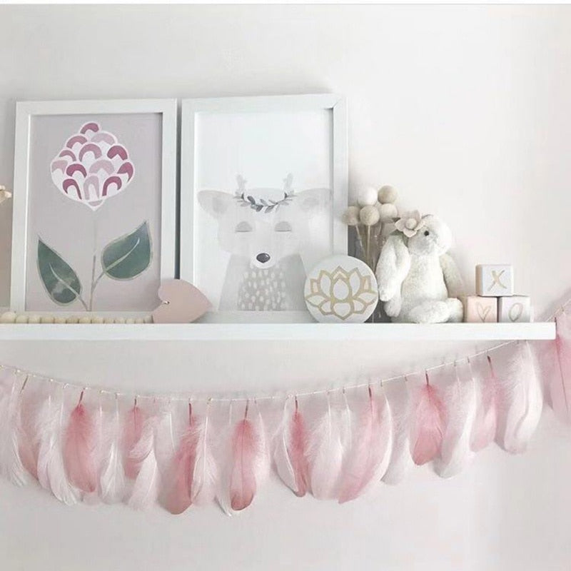 Children Room Rose Gold White Feather Buntings With Gold Glitter Powders Garlands Banner Wedding Decoration Girls Room Ornaments