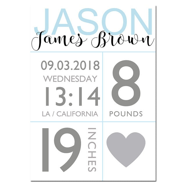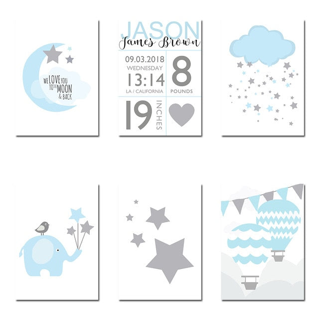 NICOLESHENTING Birth Stats Custom Posters Cartoon Nursery Canvas Art Prints Painting Wall Picture Nordic Kids Bedroom Decoration